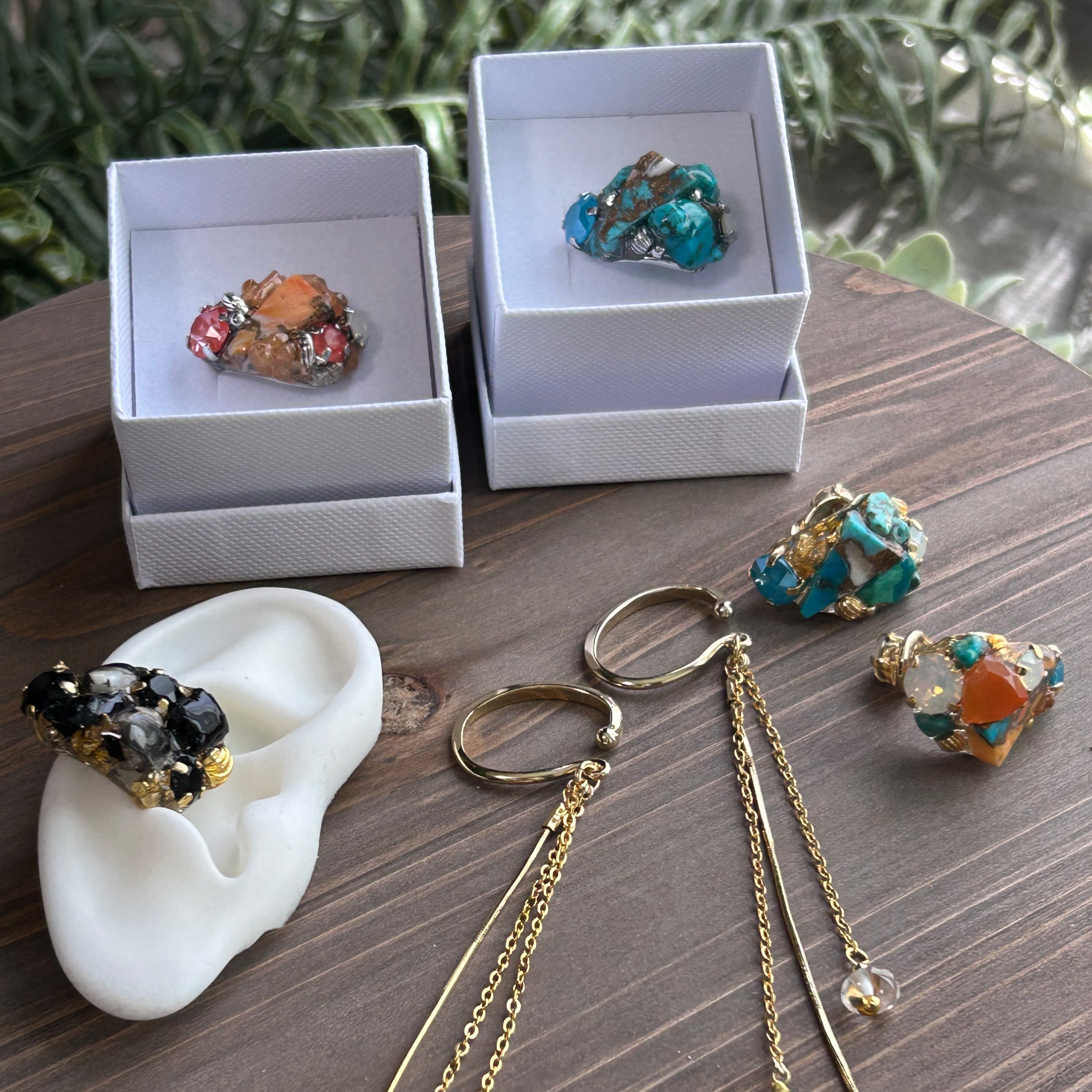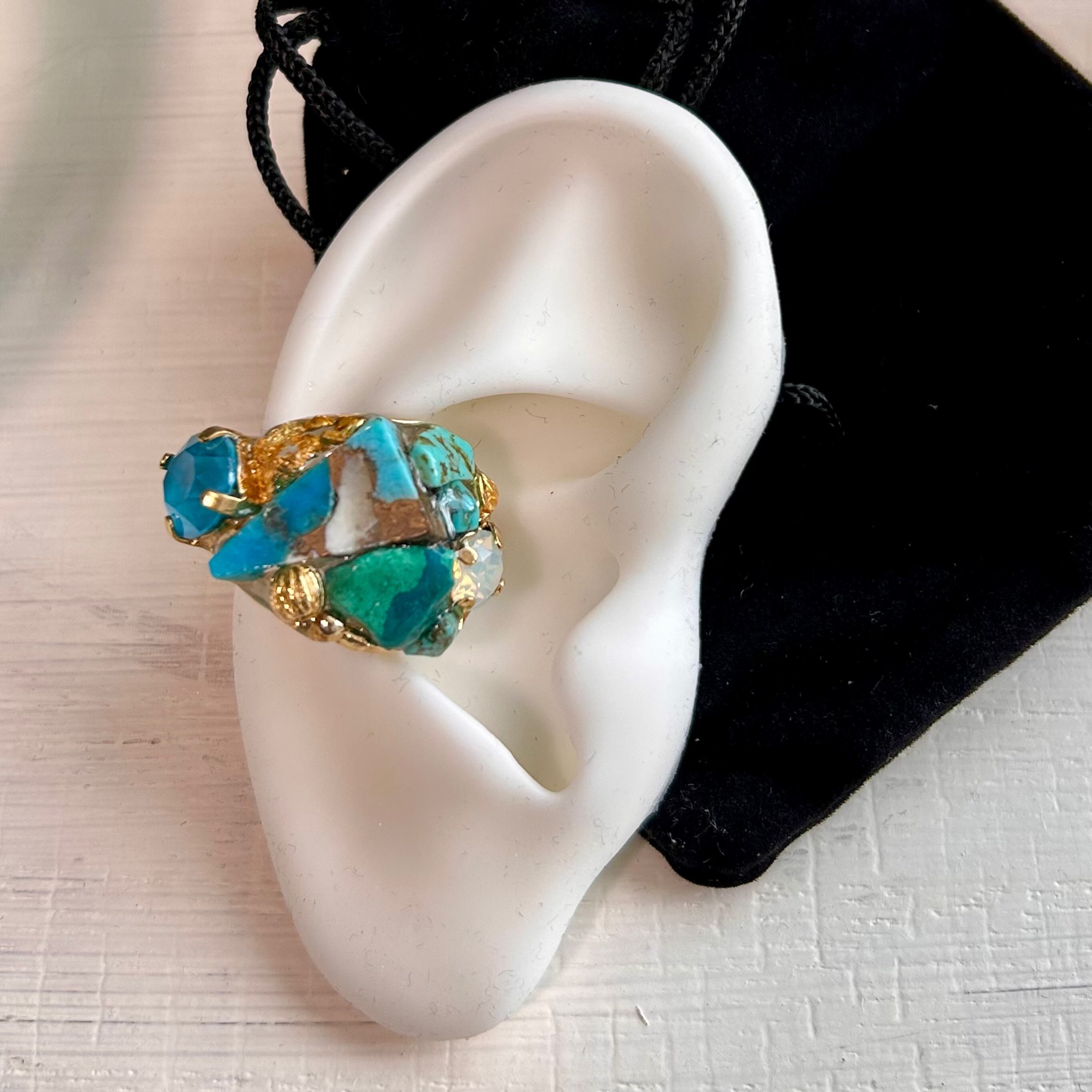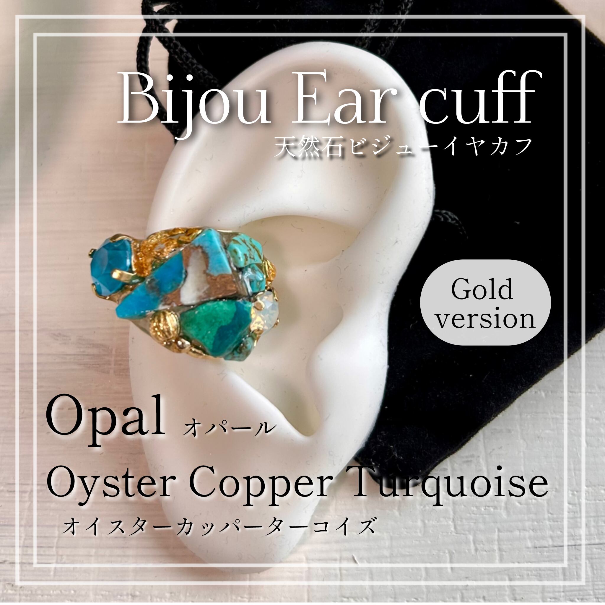 【天然石】オパール&オイスターカッパーターコイズ イヤカフ
