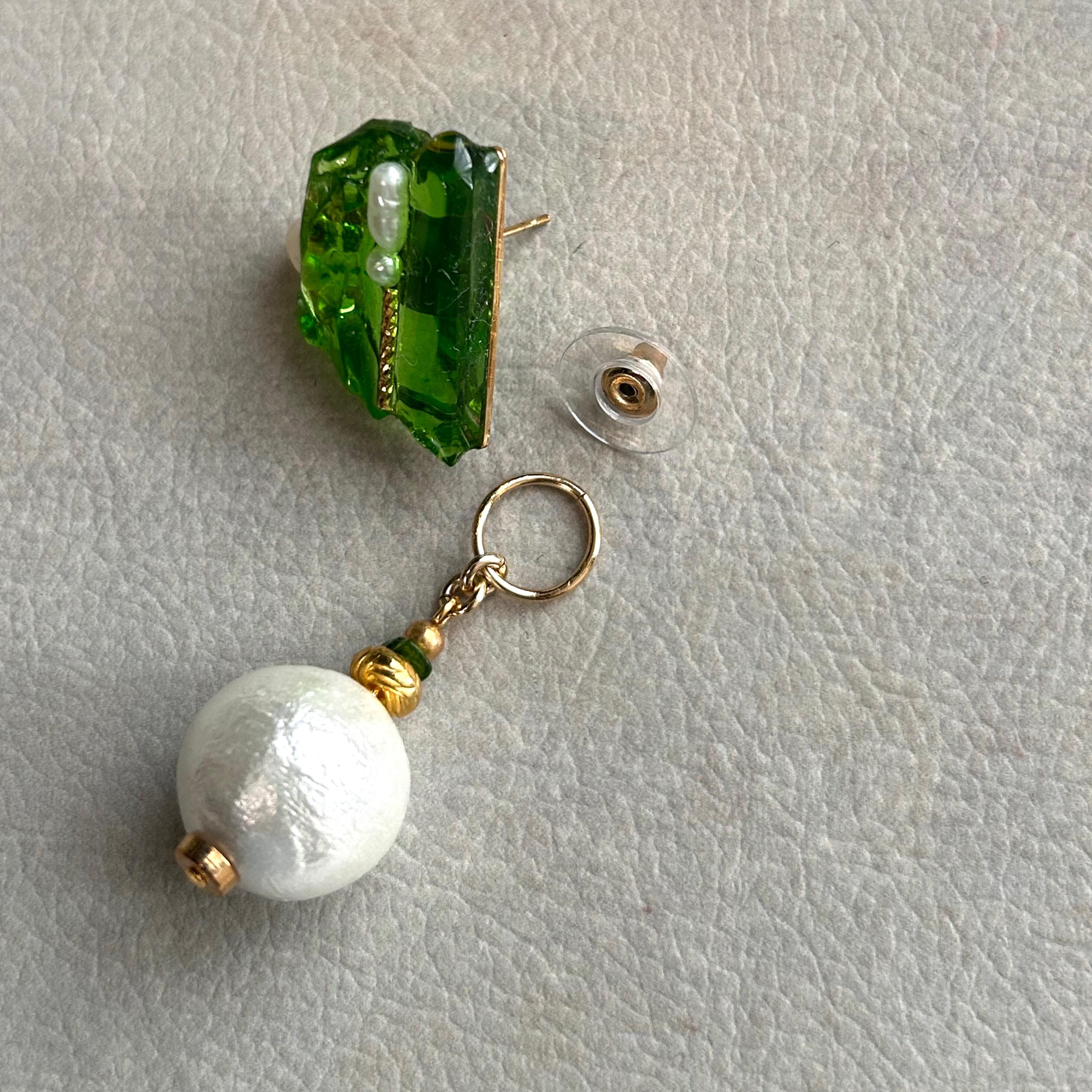 深みのあるグリーンが印象的なピアス&イヤリング。